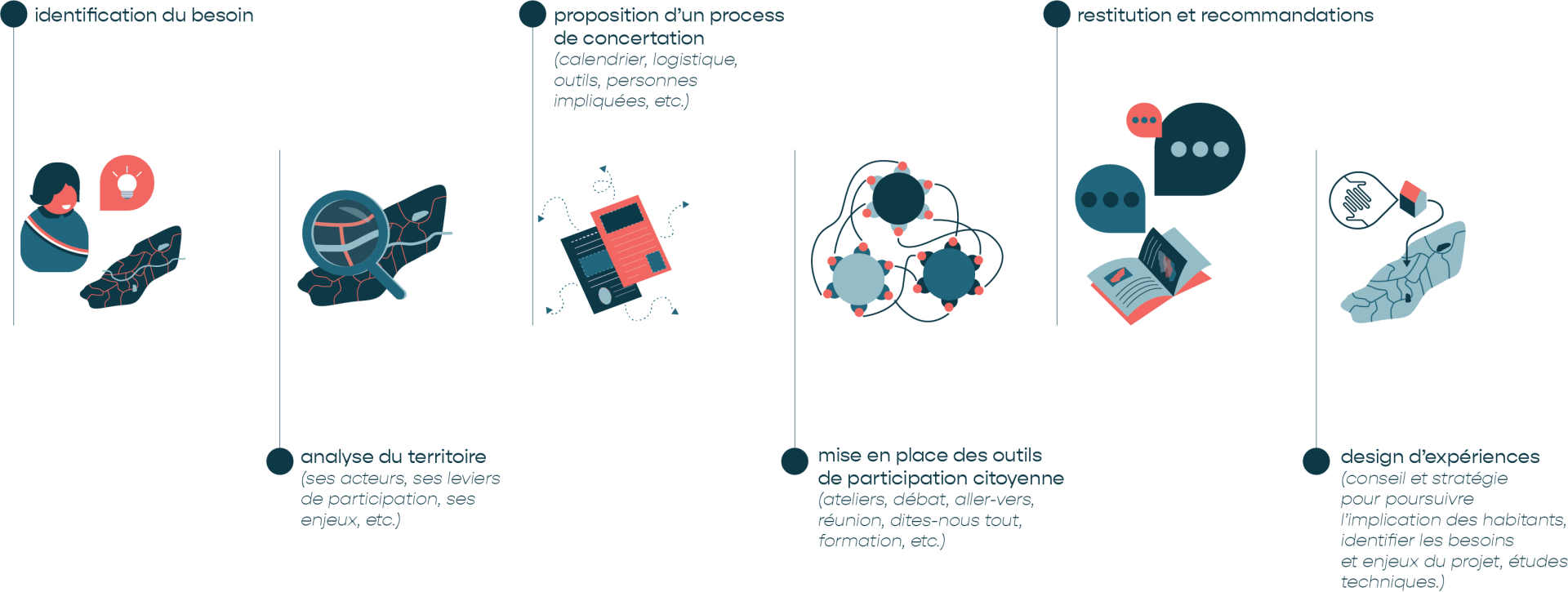 Collectivités territoriales, nous vous accompagnons pour aller à la rencontre des citoyens, des acteurs locaux ou de vos collaborateurs pour enrichir la construction de vos projets.